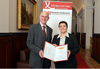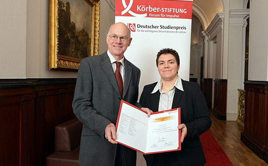 Prize winner PD Dr.-Ing. Dr. Anne Jung together with Norbert Lammert, President of the German Bundestag