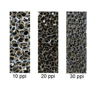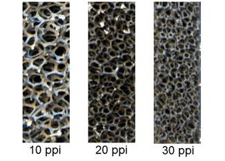 Metal foams with 10, 20 and 30 pores per inch (ppi number)