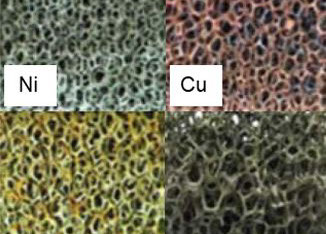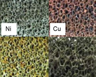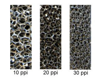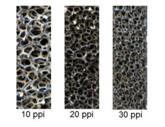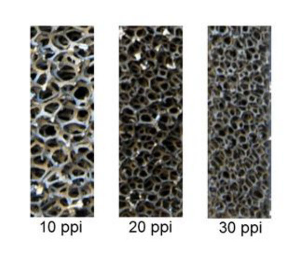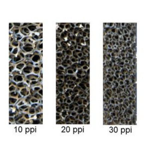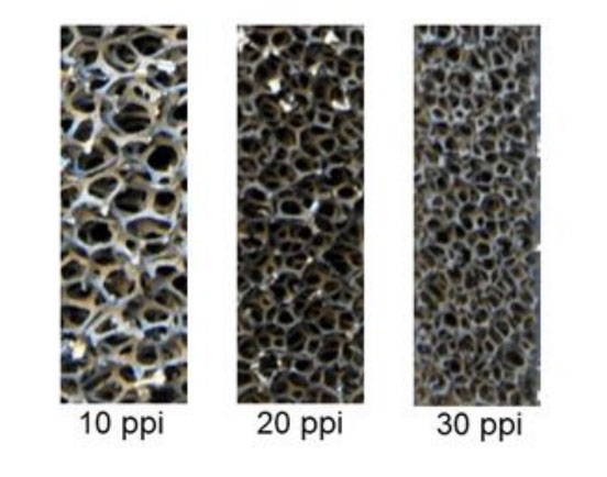 Metal foams with 10, 20 and 30 pores per inch (ppi number)